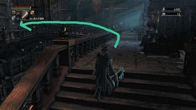 2階に上がったら、奥に進まず、橋を渡り、反対側の壁際を目指します。