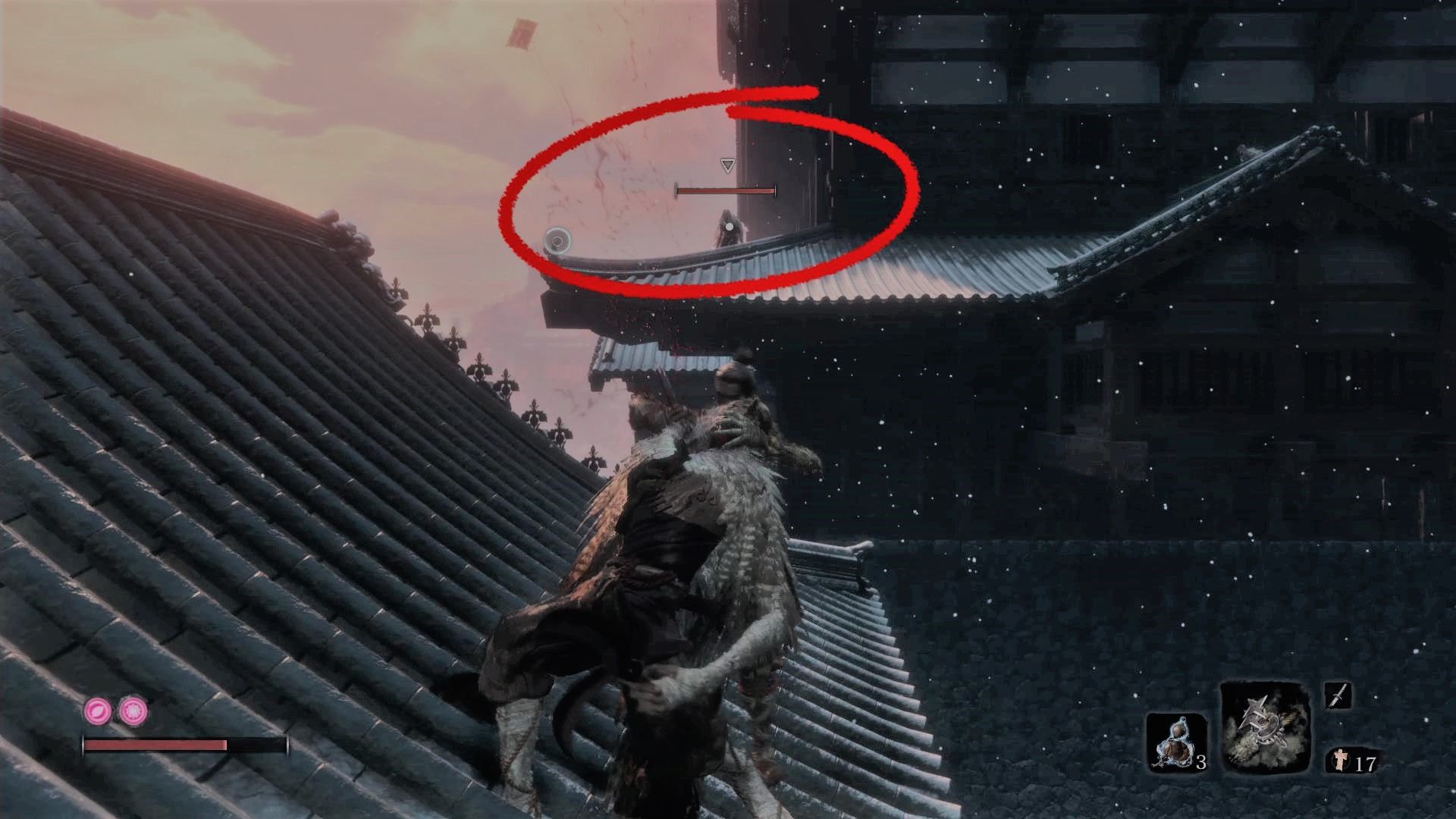 葦名城 本城からの道のりで、ここからがキルゾーンになっているので注意します。