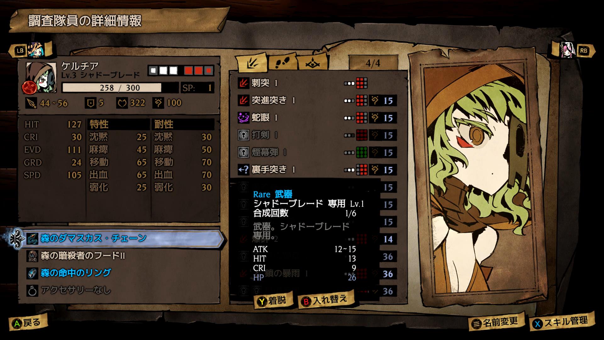 「血を望む刃」「妖気の刃」あたりが攻撃としては優秀で、「燕返し」